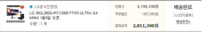 그러던 와중에 38GL950G 와 EVGA RTX3080 FTW3 ULTRA 결합 할인상품이 떠서 구매에 성공(?) 했습니다.