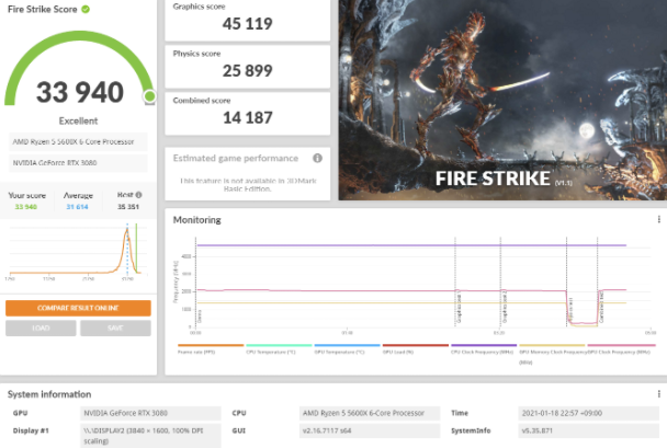애프터버너를 이용해 3D Mark 로 테스트 해보왔습니다.