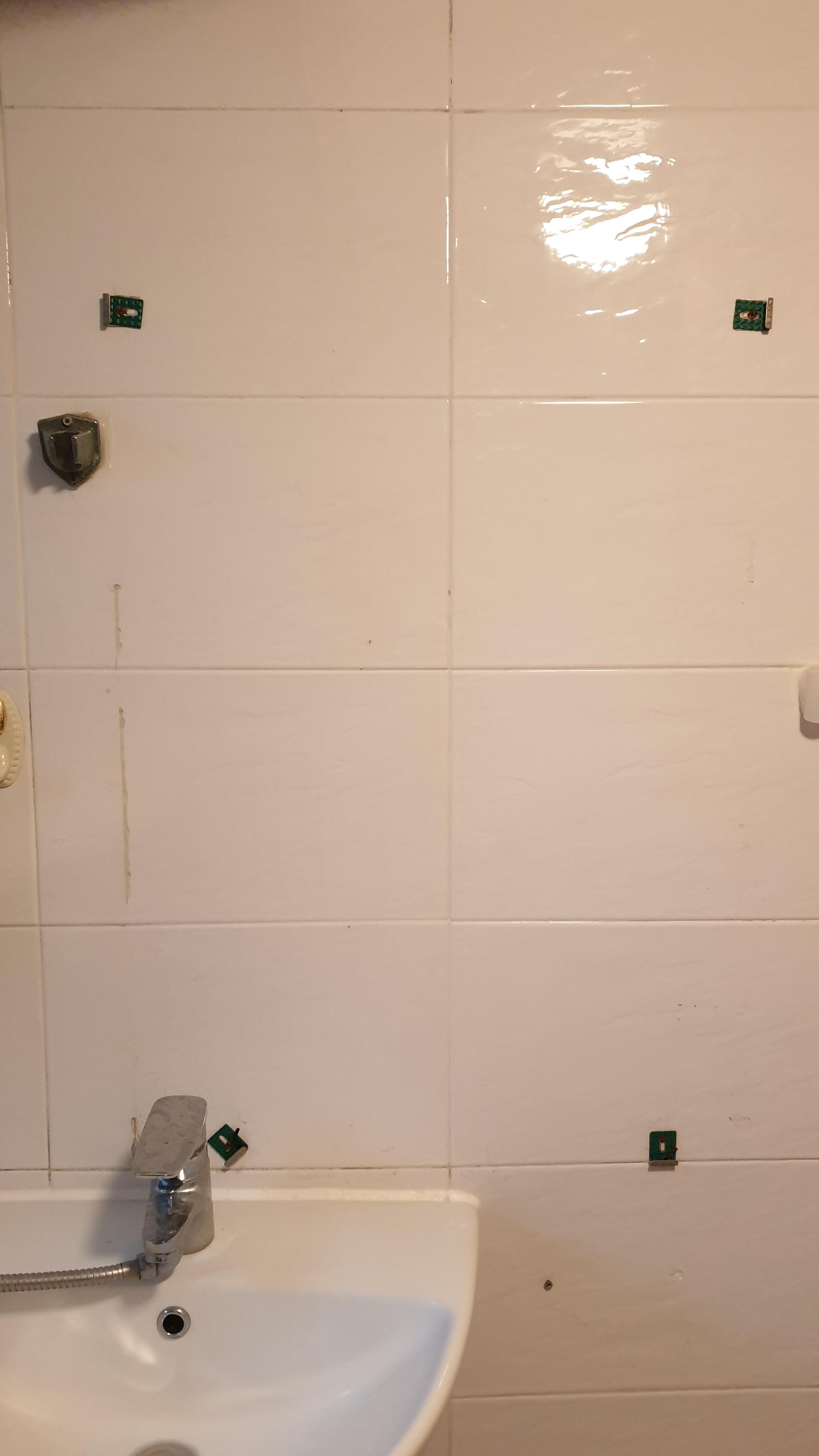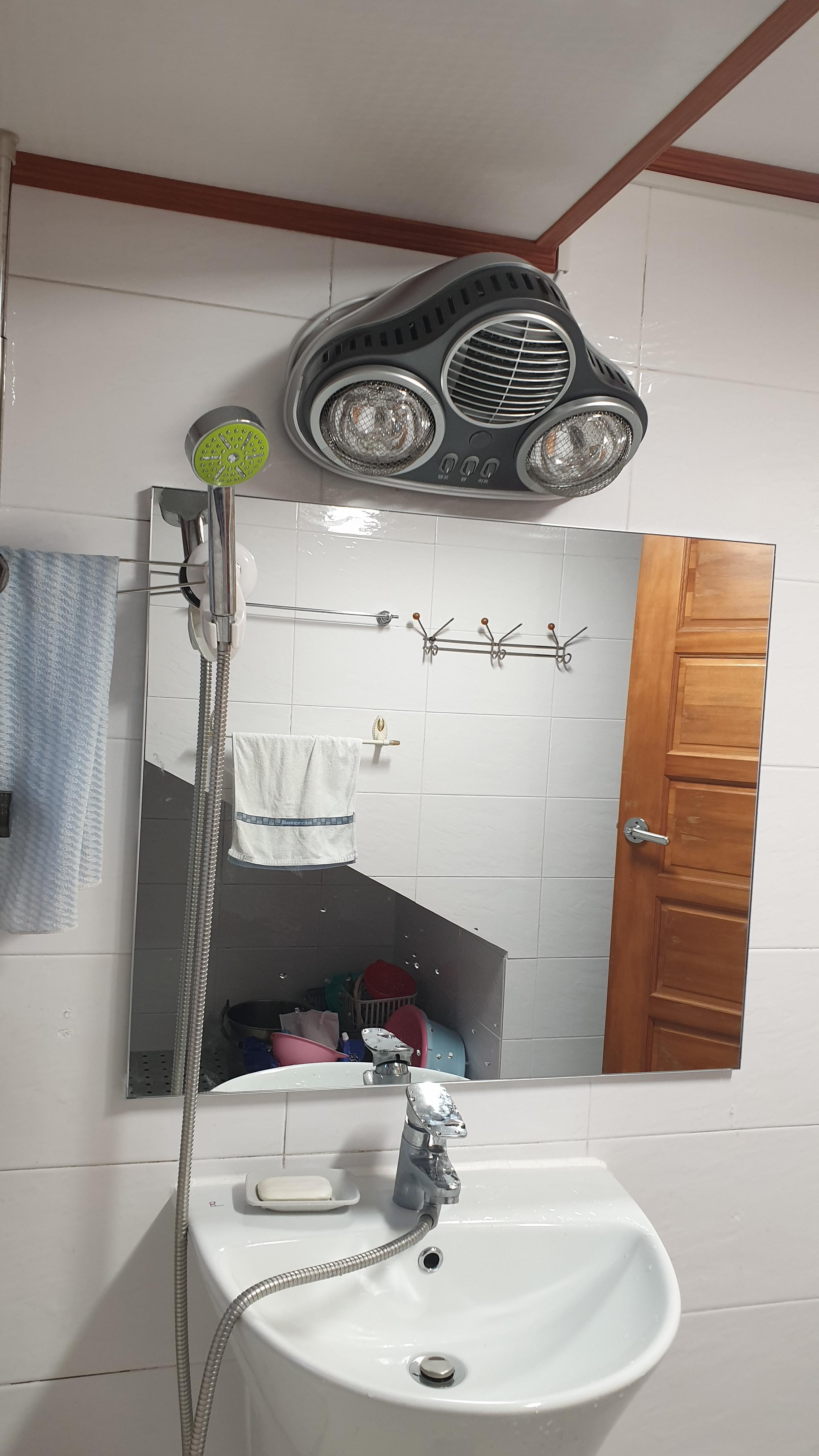 - 일반적인 욕실거울은 거울 받침대를 욕실벽에 피스로 고정 하여 걸치고, 뒷면에 실리콘으로 접착되어 있습니다.