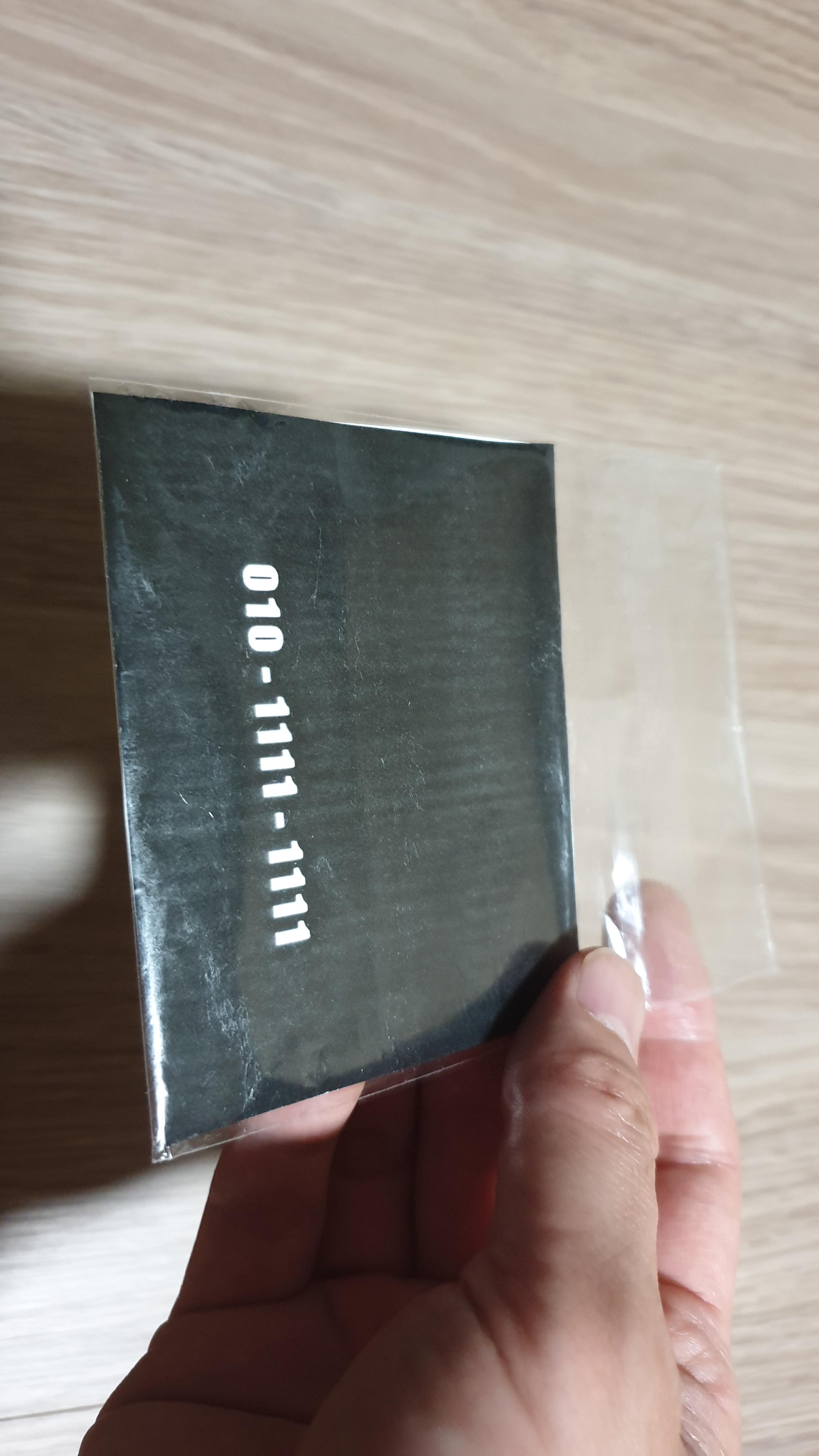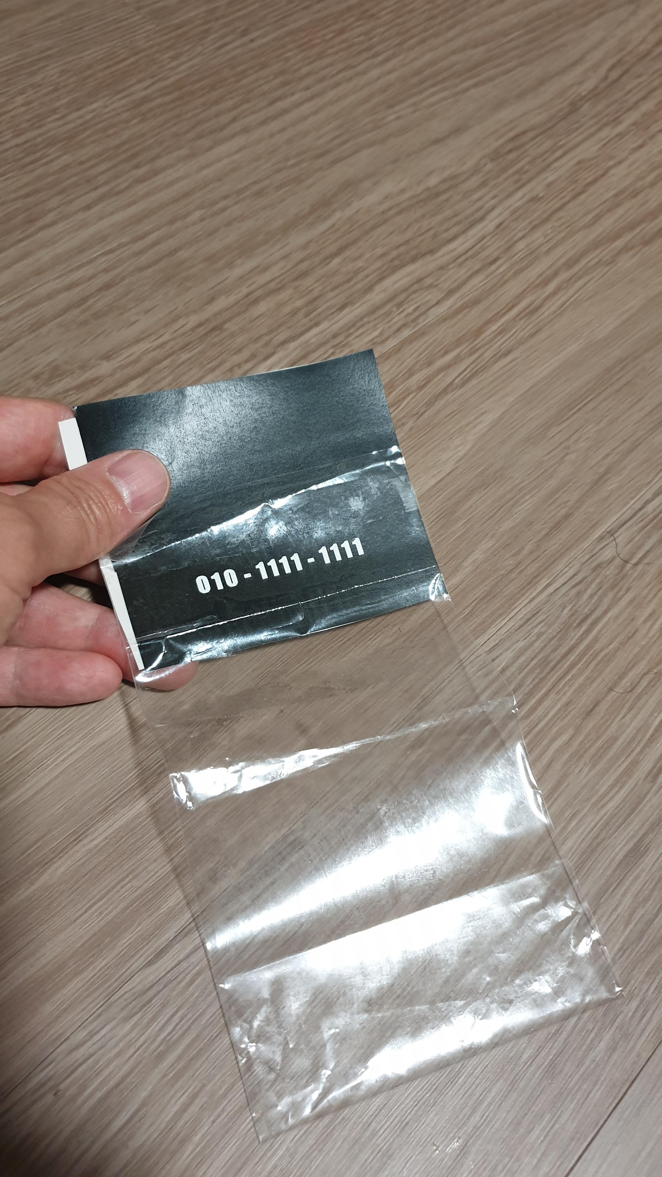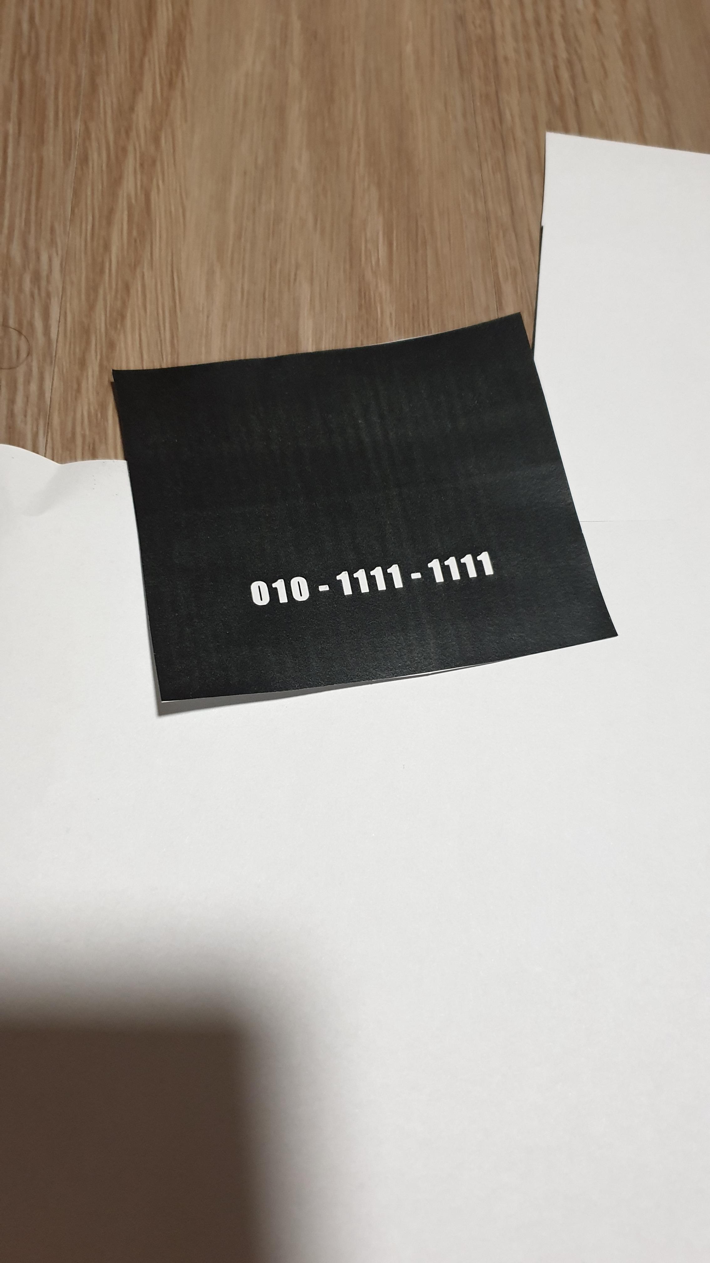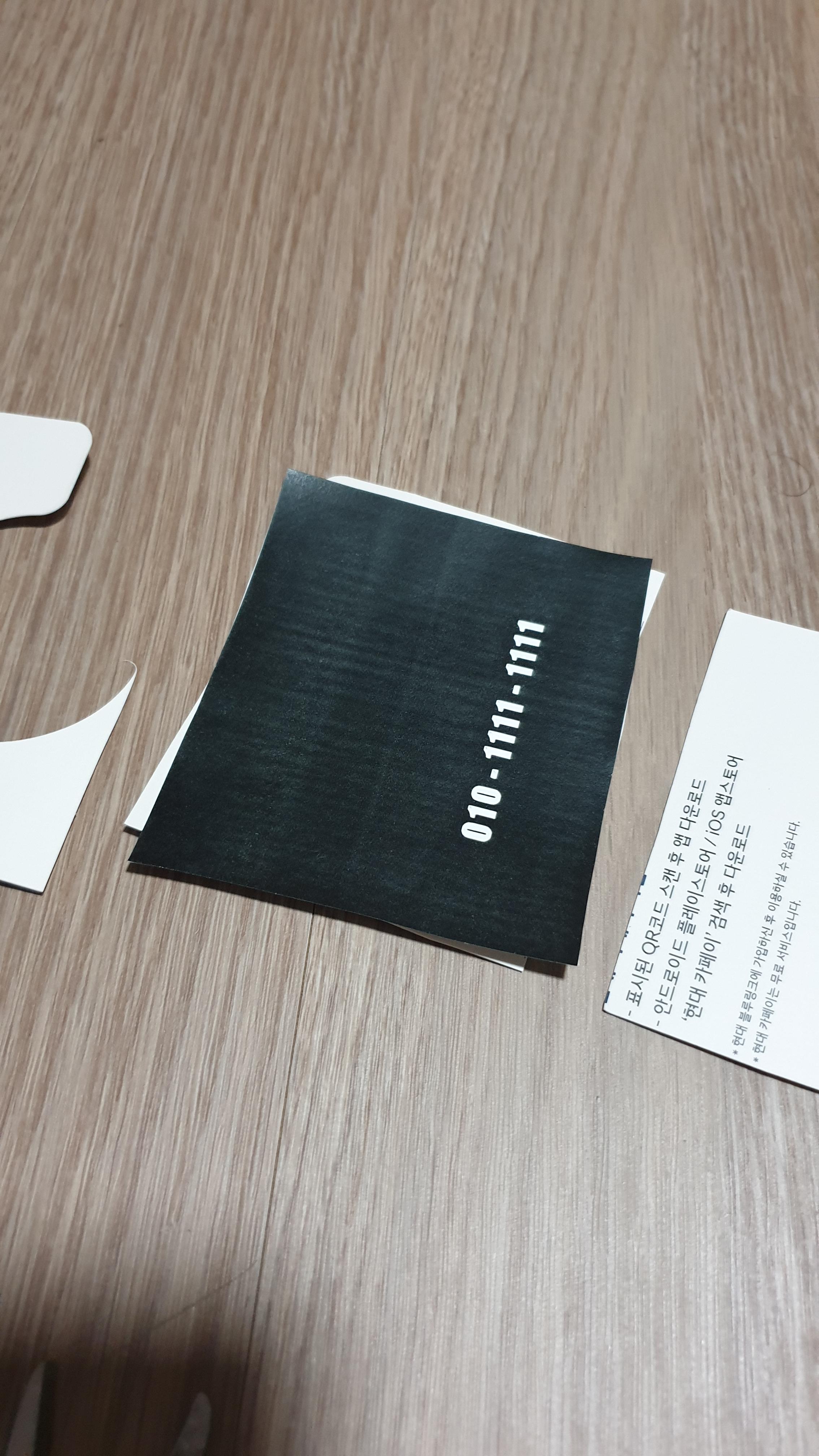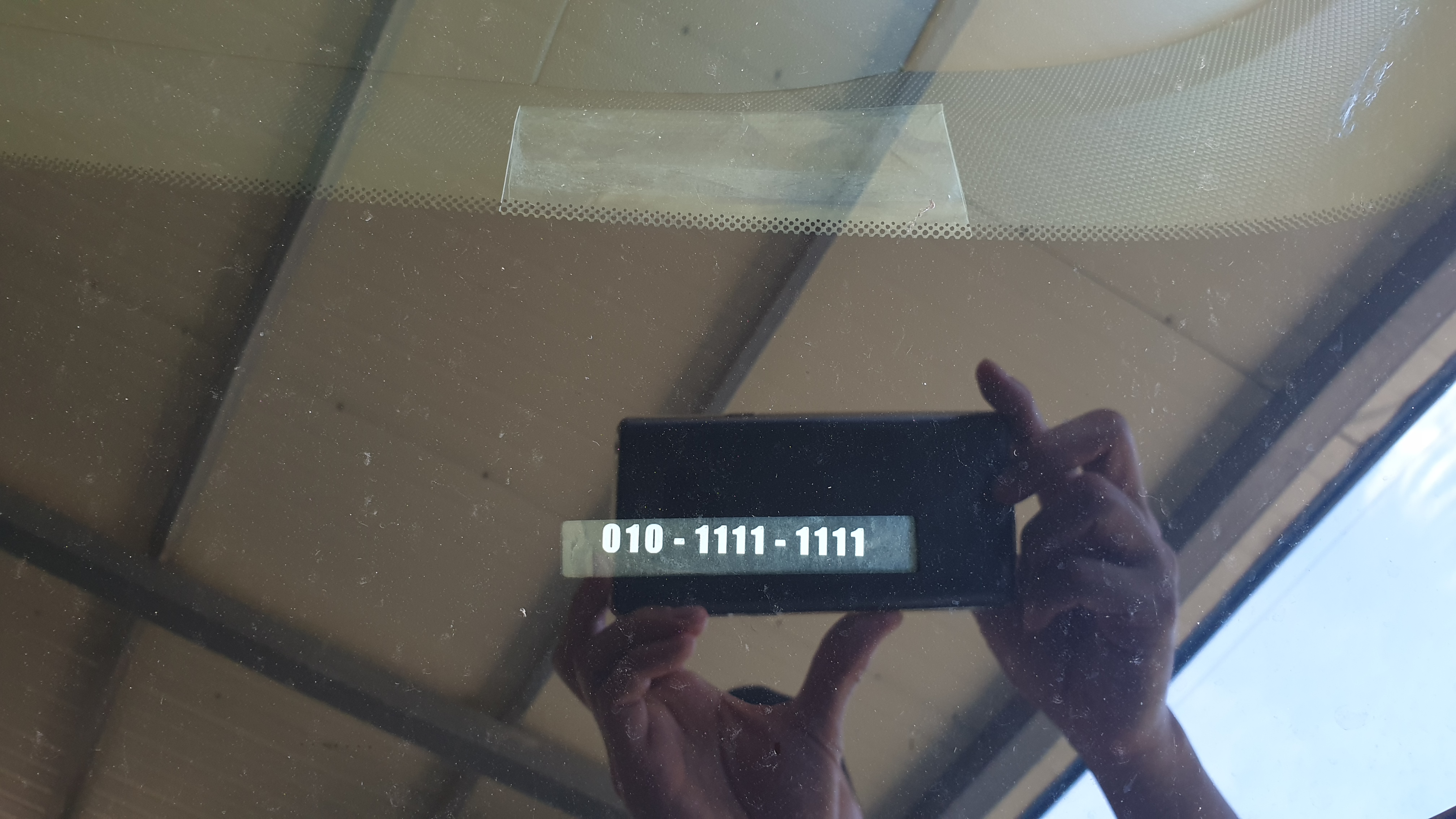 룸미러에 걸려있던 카페이 광고 두꺼운 종이를 출력한 전화번호에 맞게 잘라주었습니다.