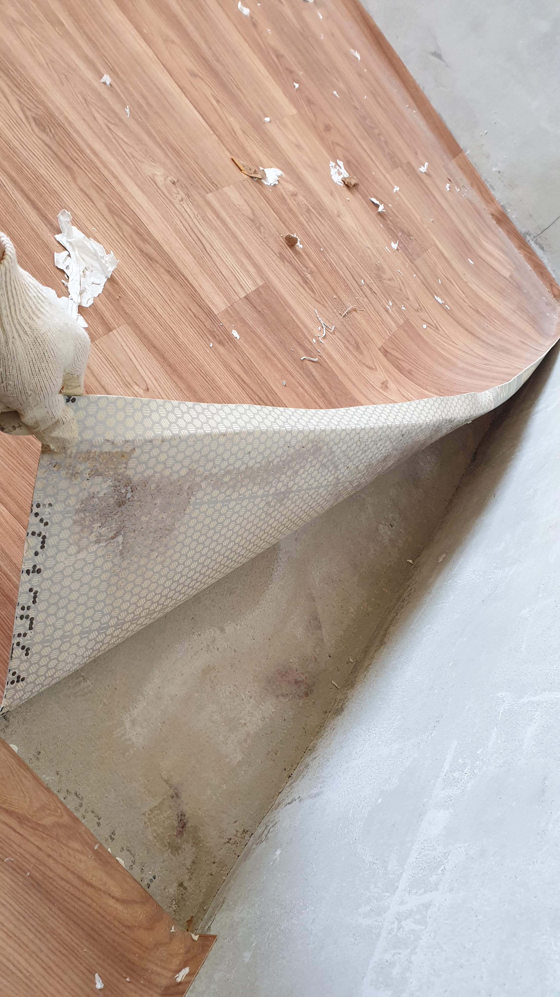 - 장판의 경우 일반적으로 장판 연결 부위만 본드로 바닥에 붙어 있습니다.