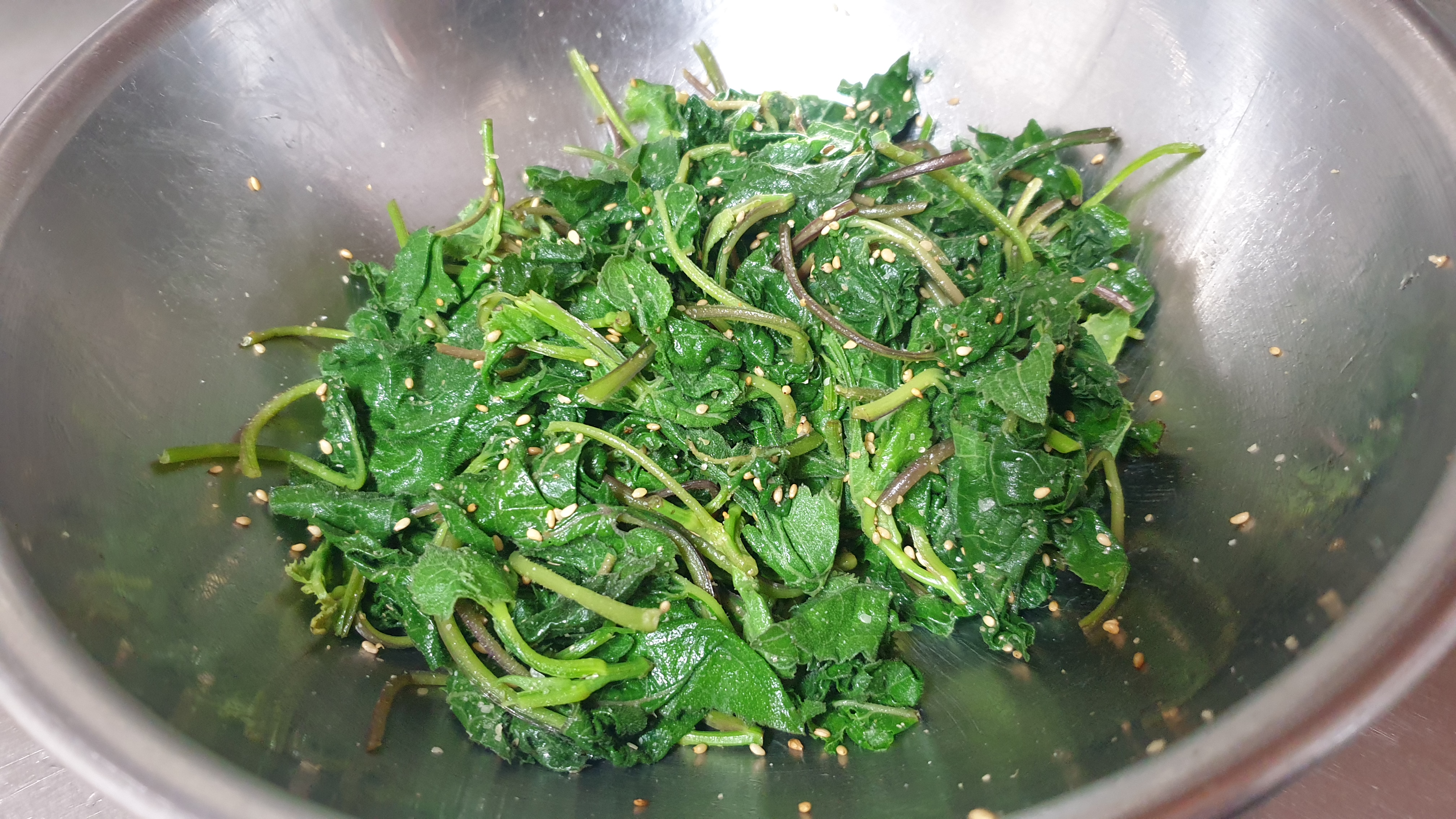 참기름 1수저, 깨소금+통깨 2수저, 소금 1/3 수저