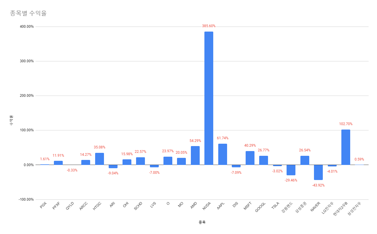 종목별 수익율