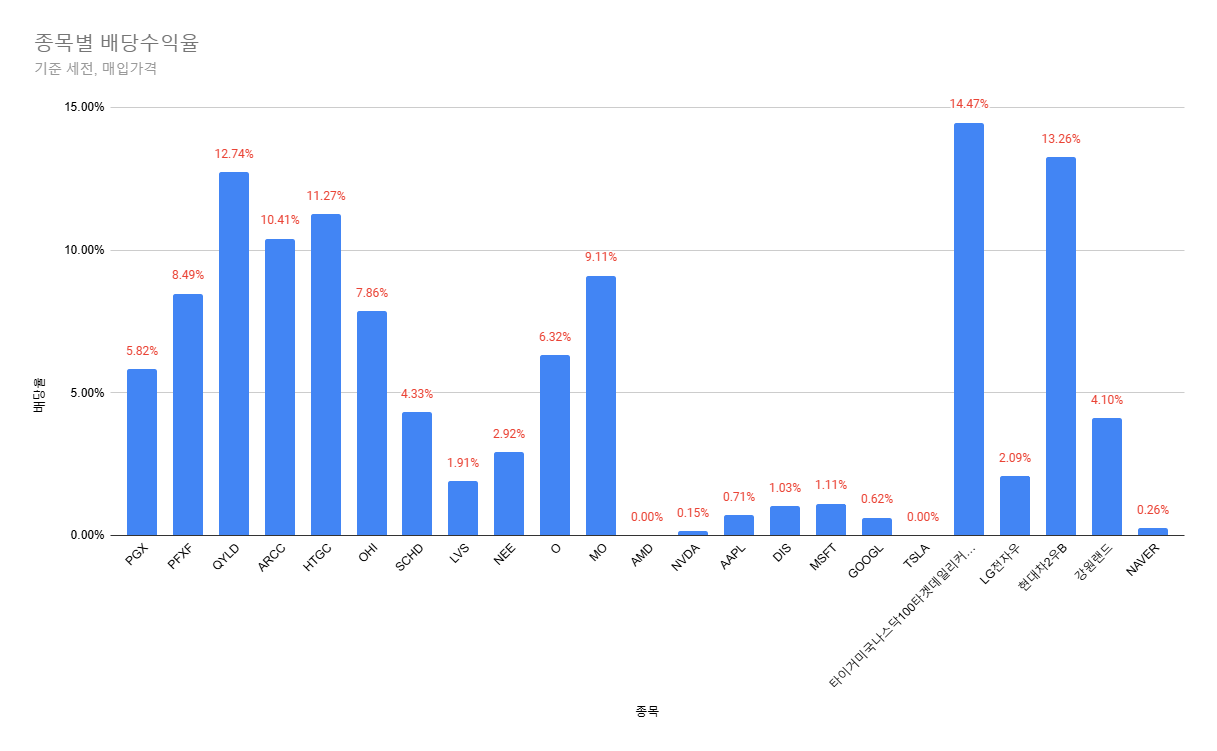 모든자산은 원화기준으로 통일하고, 배당금은 세전배당금으로 표기합니다.