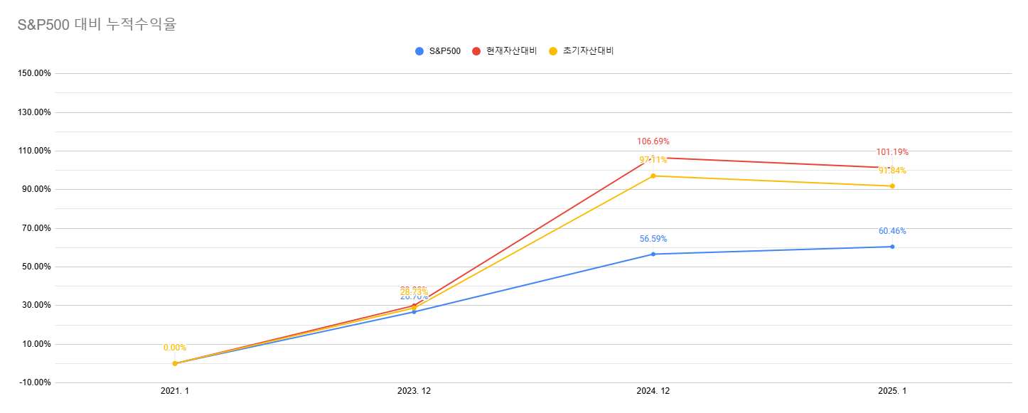 - 현재 주식총자산의 S&P500 대비 누적수익율 성과를 보고자합니다.