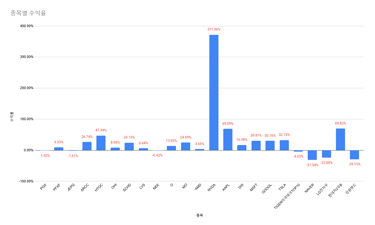 - 현재 주식총자산의 S&P500 대비 누적수익율 성과를 보고자합니다.