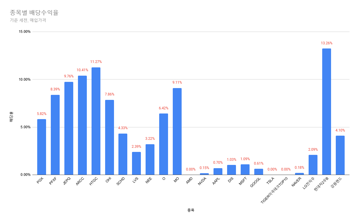 모든자산은 원화기준으로 통일하고, 배당금은 세전배당금으로 표기합니다.
