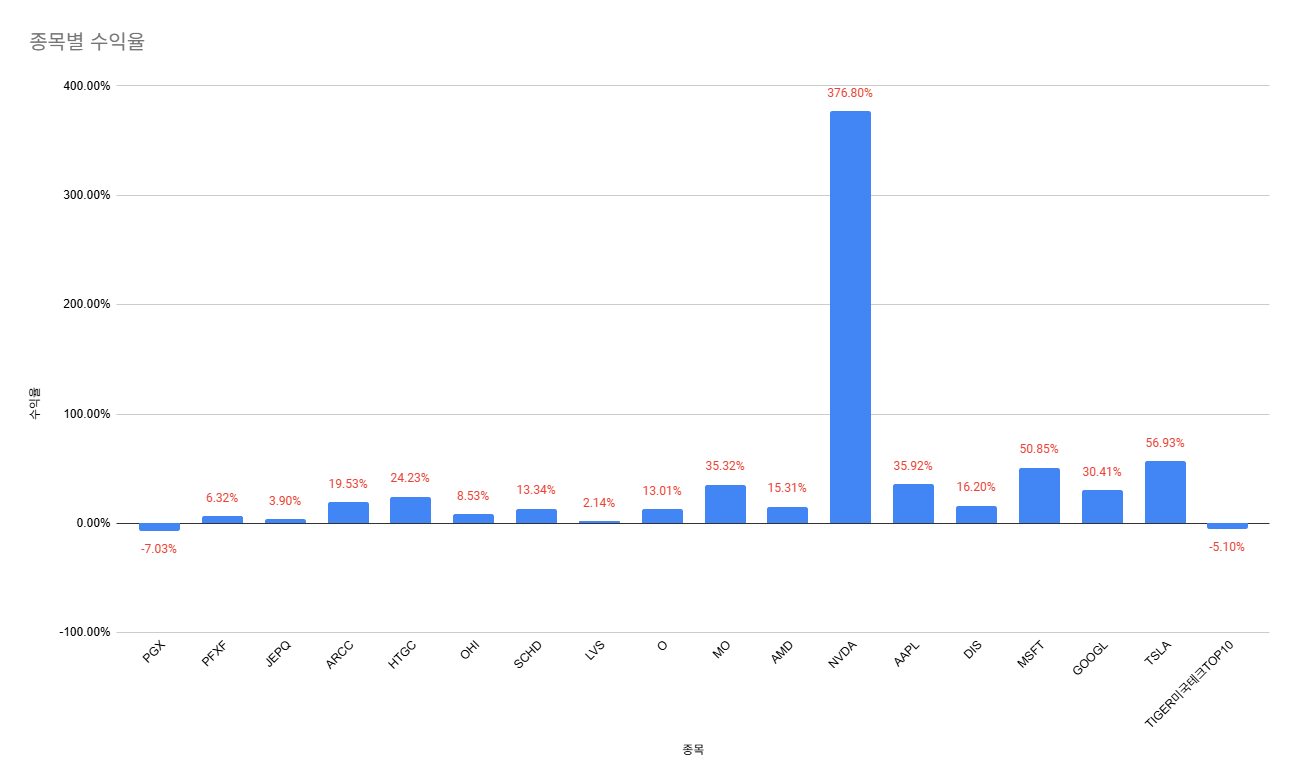 - 현재 주식총자산의 S&P500 대비 누적수익율 성과를 보고자합니다.