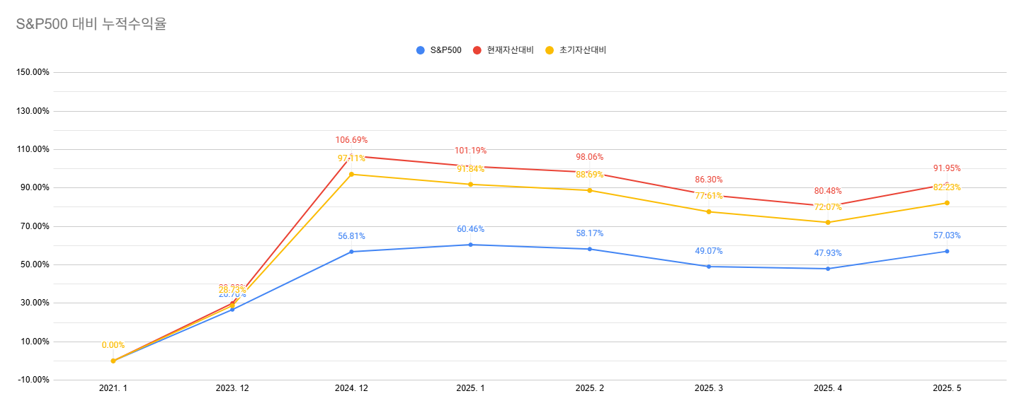 - S&P 500 대비 현재 각각, 34.91%, 25.19% 아웃퍼폼입니다.
