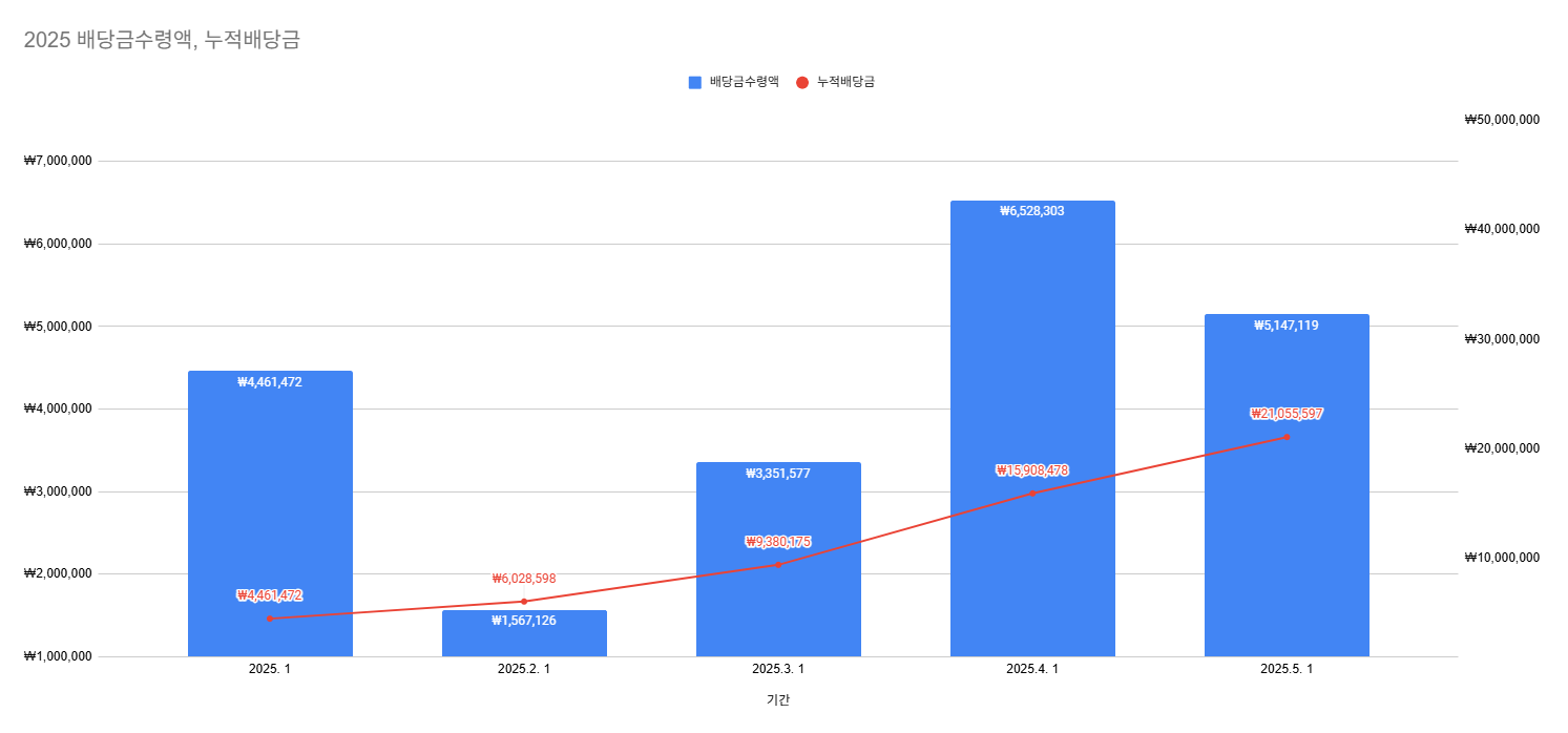 2025년 5월결산입니다. 은퇴 후 배당으로 살아온지 53개월차입니다.