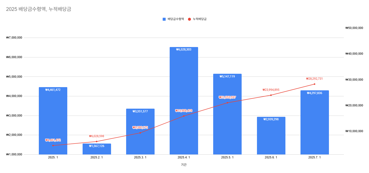 2025년 7월결산입니다. 배당으로 살아가기 55개월차입니다.