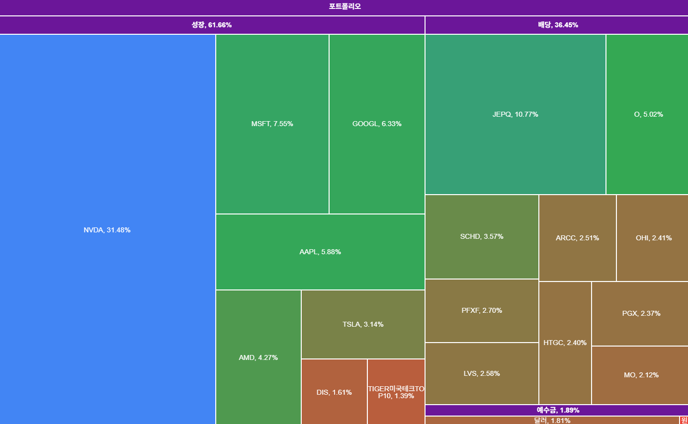 - 현재 주식자산의 포트폴리오 구성입니다.