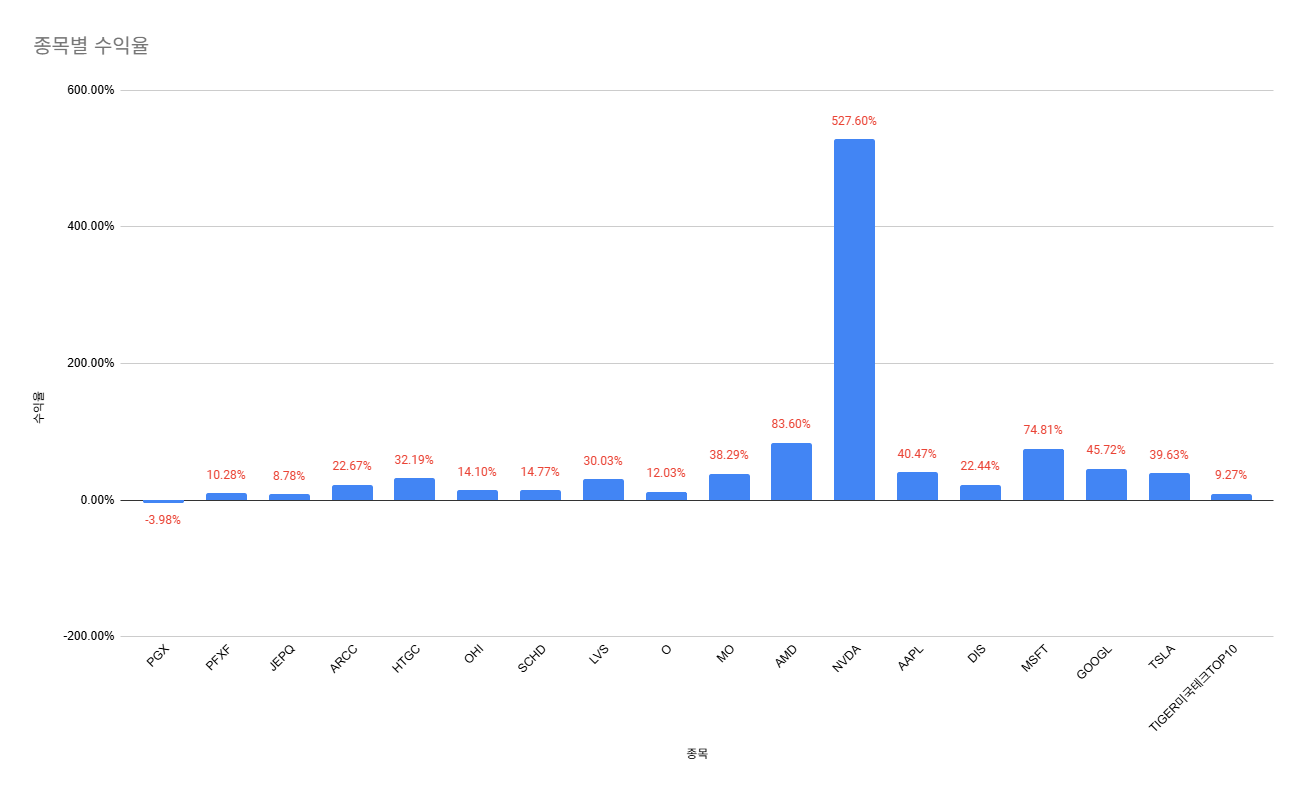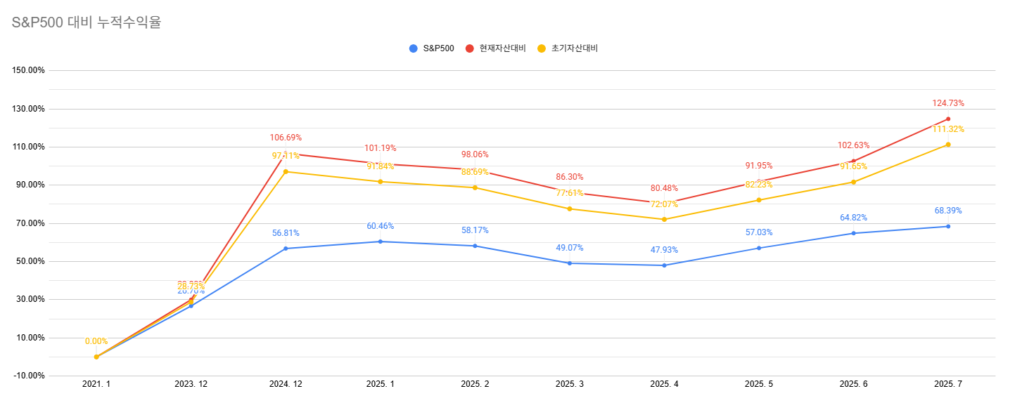 - 현재 주식총자산의 S&P500 대비 누적수익율 성과를 보고자합니다.