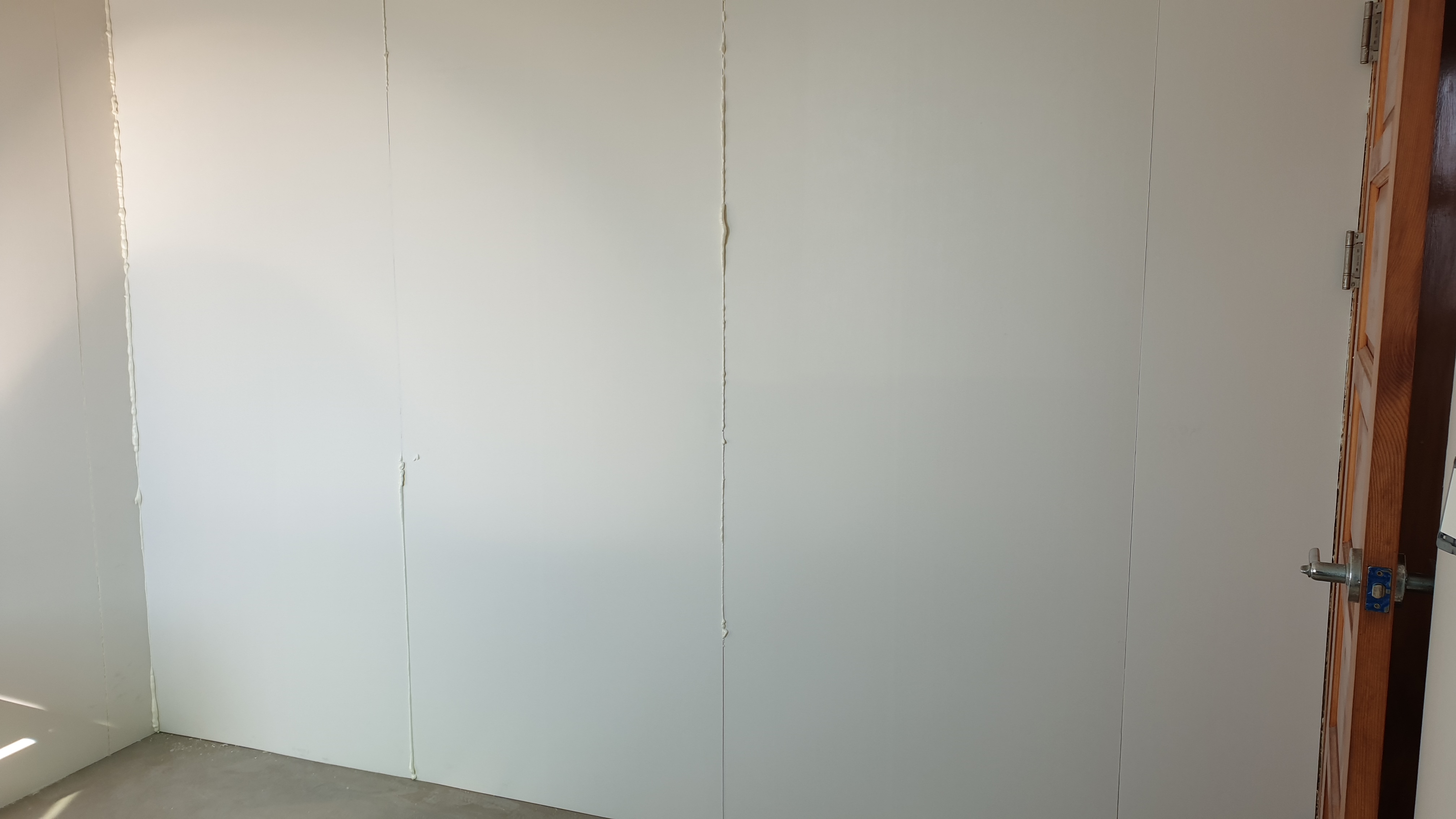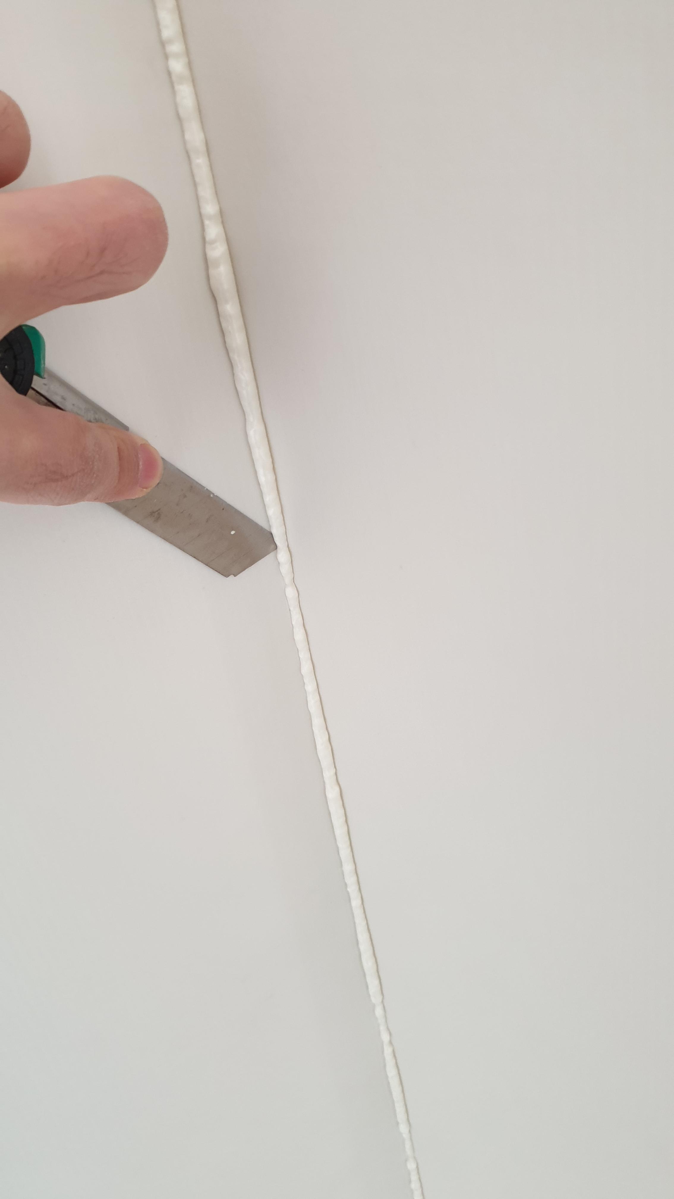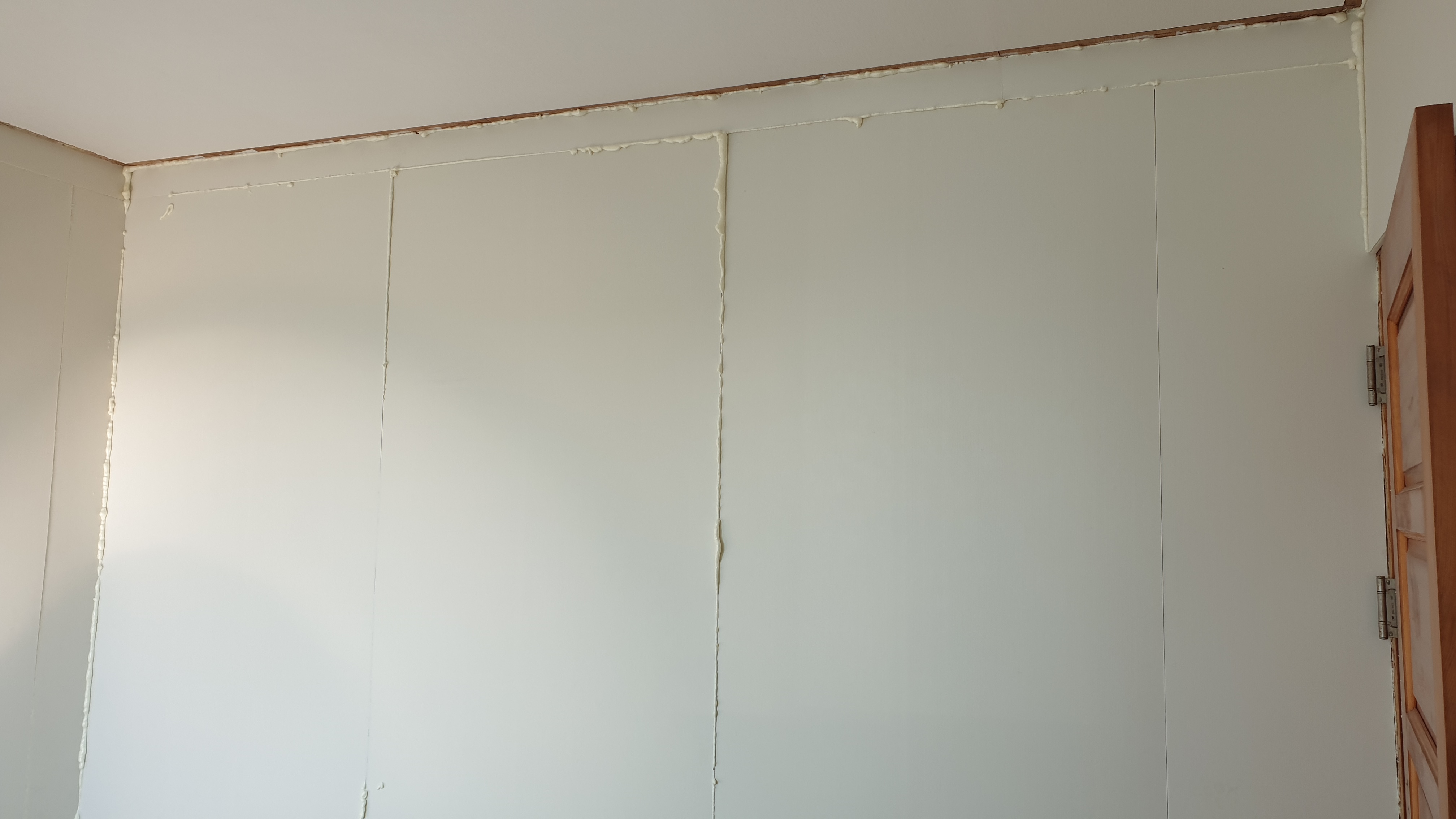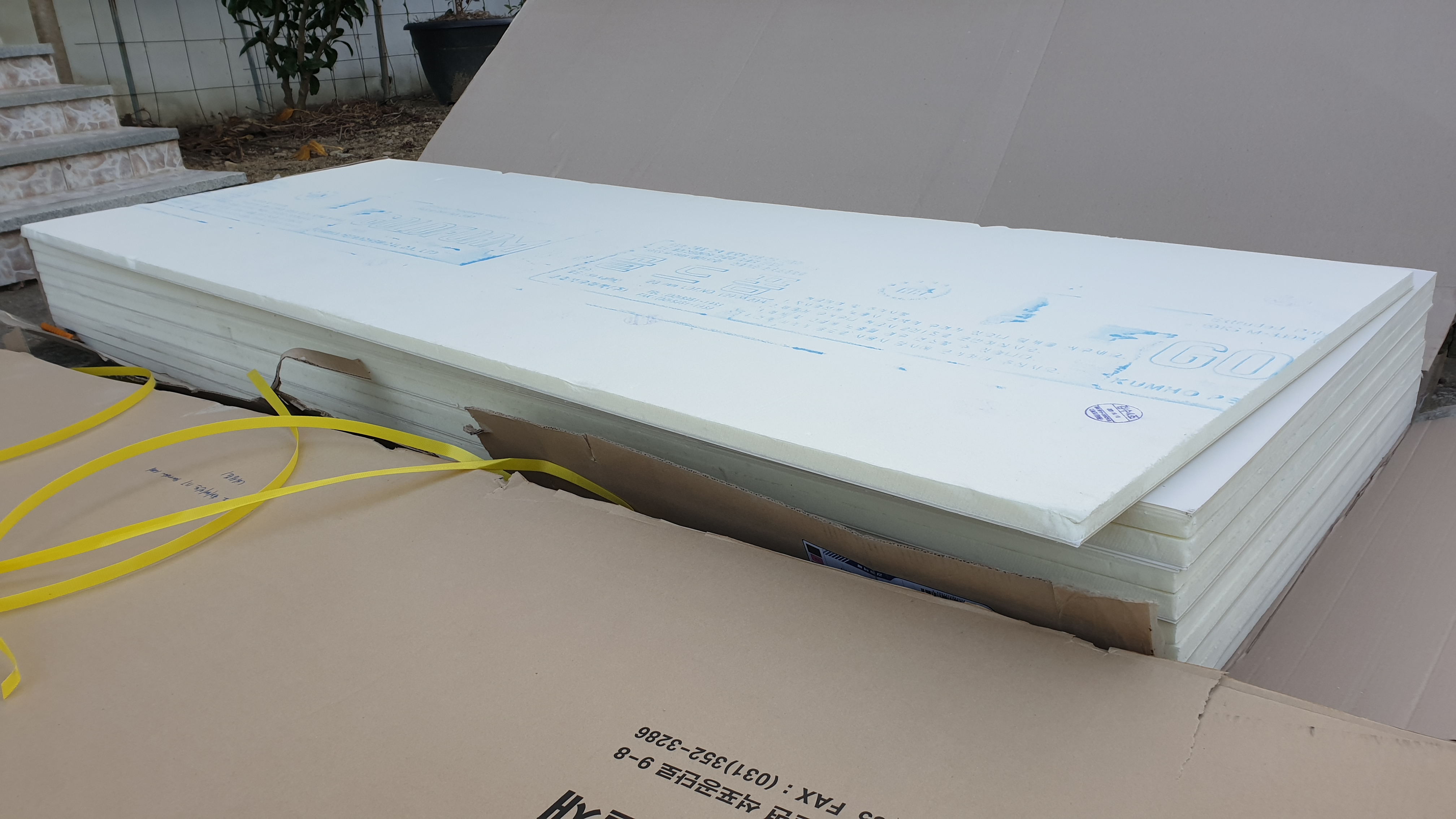 - 이보드 틈새들에 퍼티를 진행 할 예정입니다. 따라서 이보드 부착시에 가운데보다 이보드간 틈새 부분을 더 꽉 눌러주면 좋습니다. 그렇게 되면 나중에 이보드 위에 추가할 퍼티가 이보드 가운데와 높이가 맞아지면서 평평한 면을 얻을 수 있습니다.