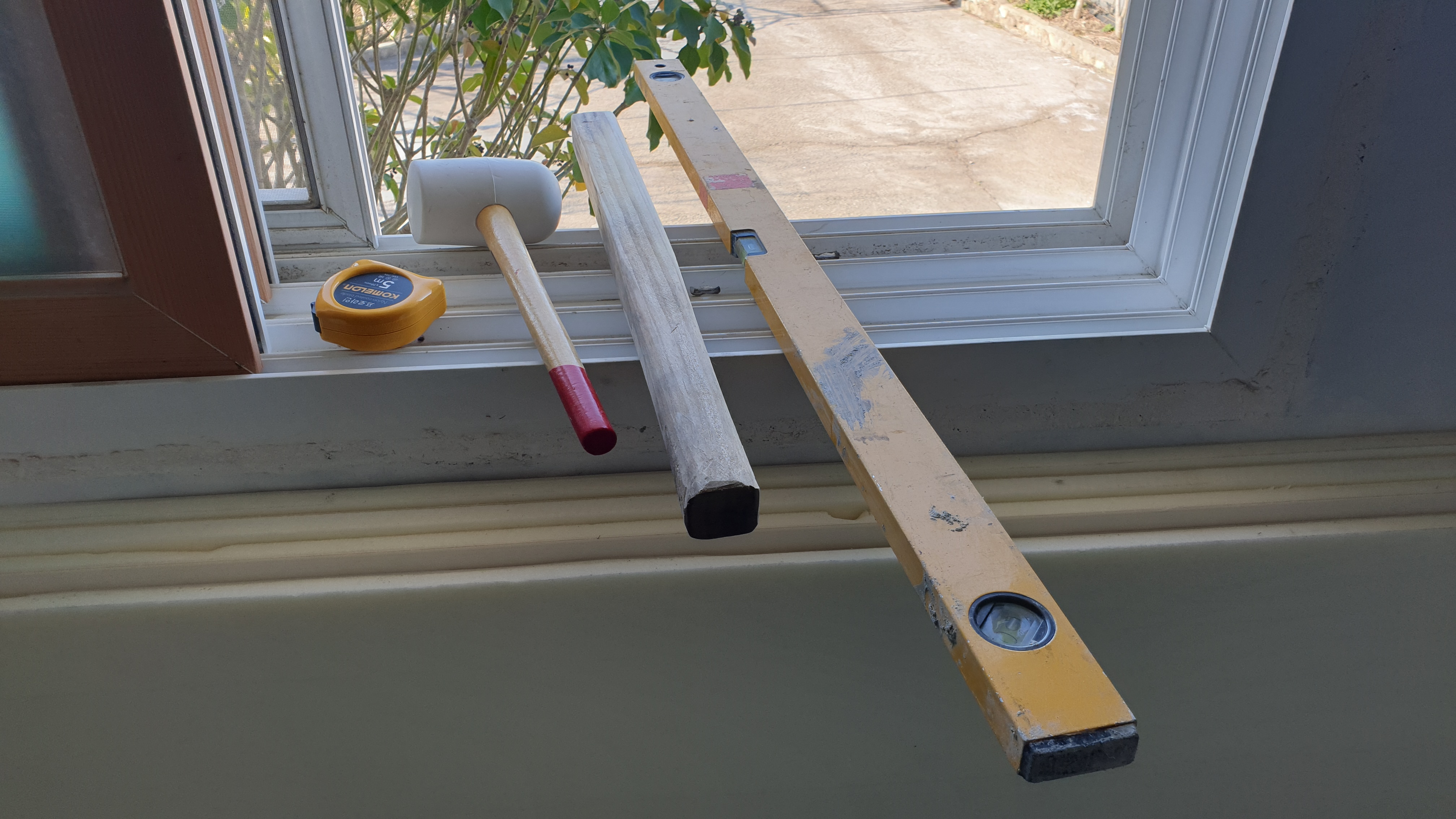 - 폼본드로 부착 후 눌러 주어야 하는데 긴 각재등을 이보드에 대고, 고무망치로 쳐주면 편하고, 평평해 집니다